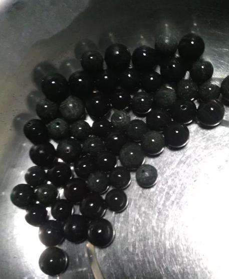 打完孔之后就要对珠子的表面进行抛光,这样才能使珠子的表面更为光滑洁净