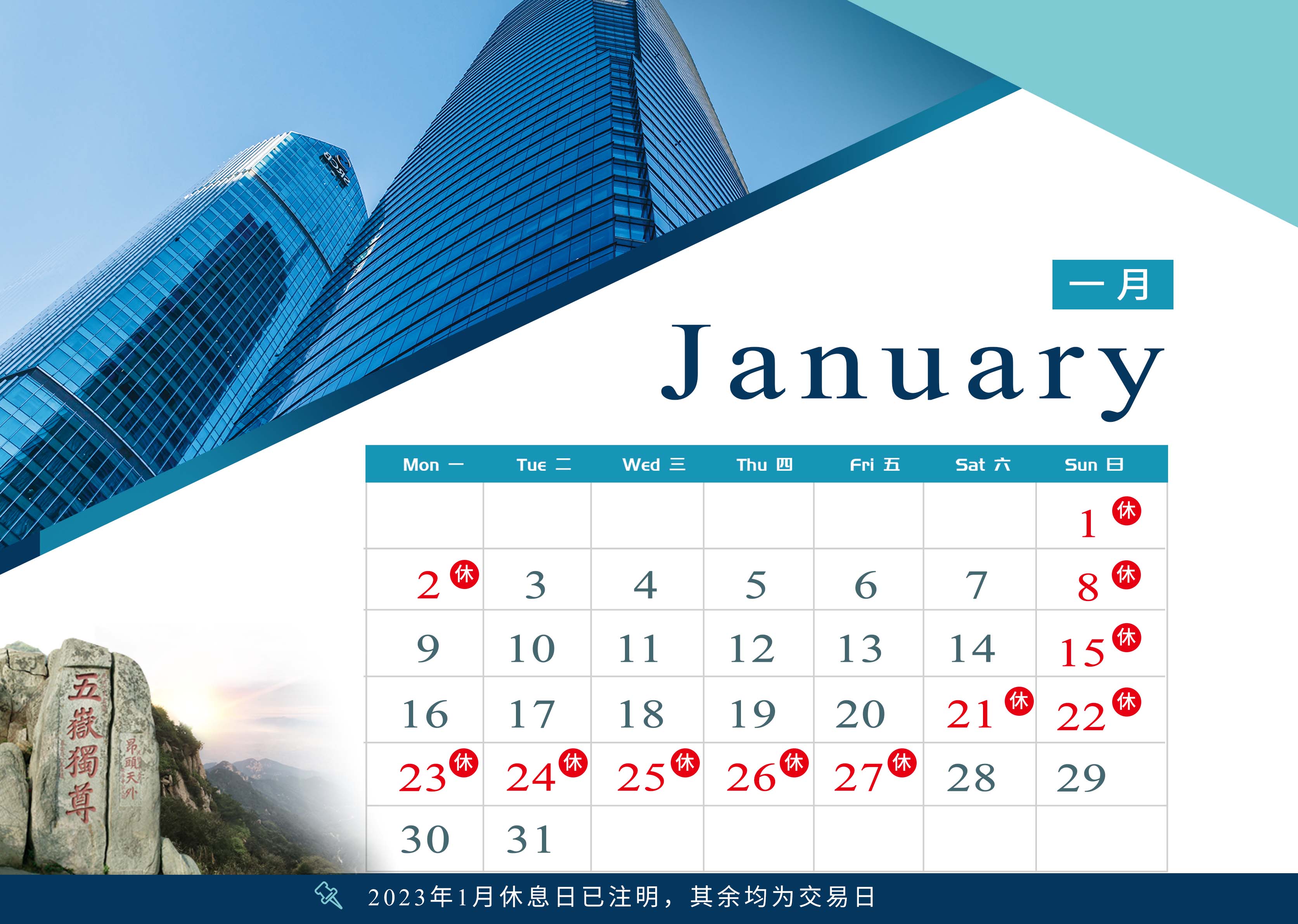 2023年1月交易日历