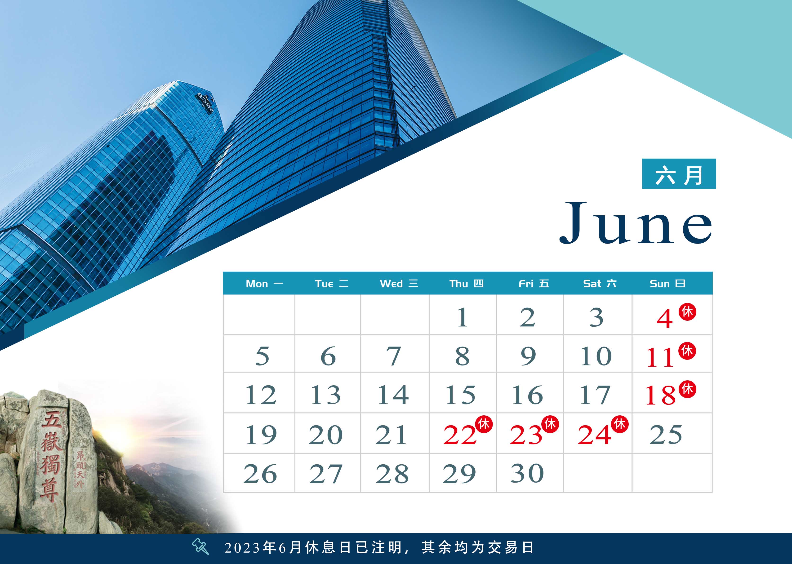 2023年6月交易日历