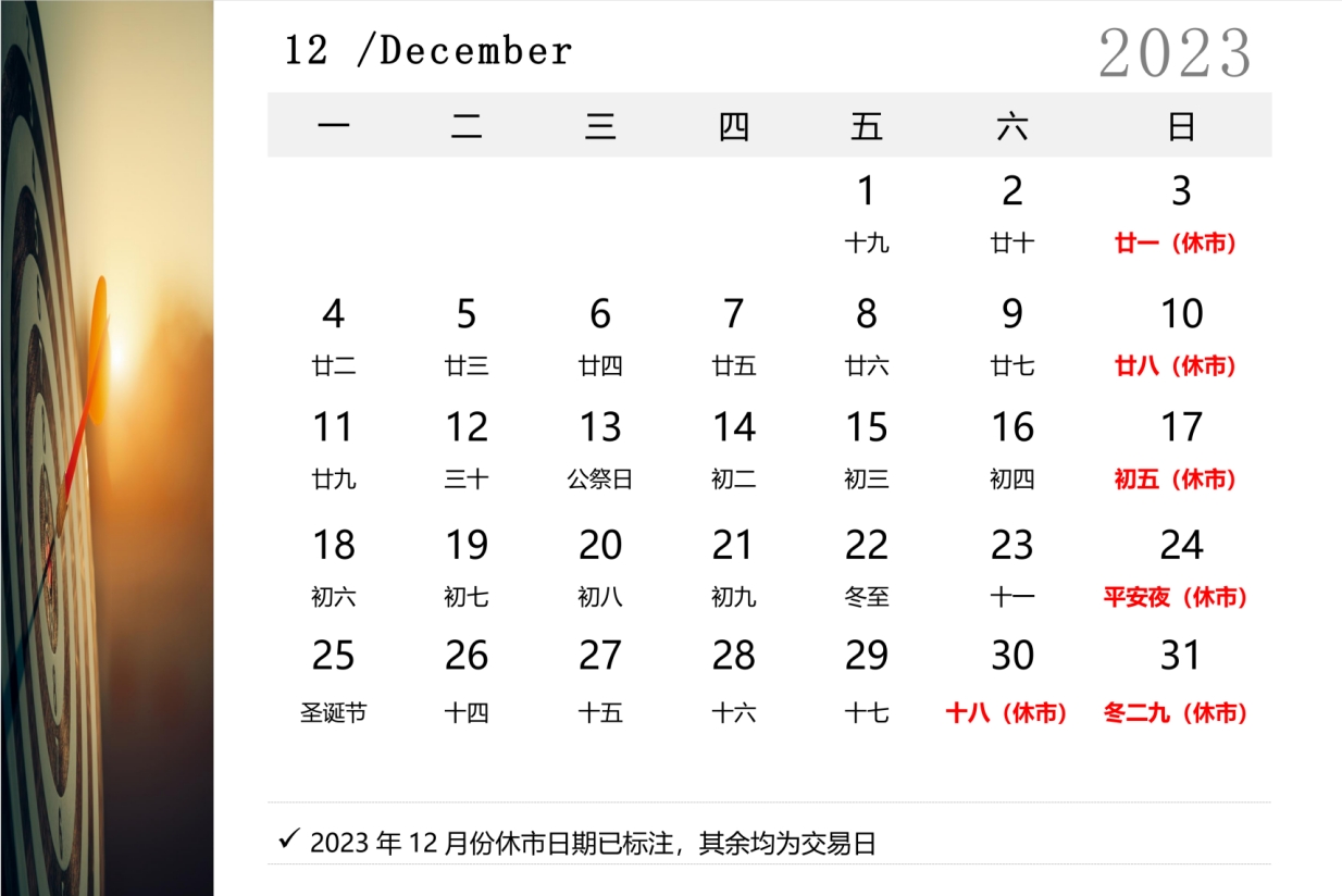 2023年12月交易日历