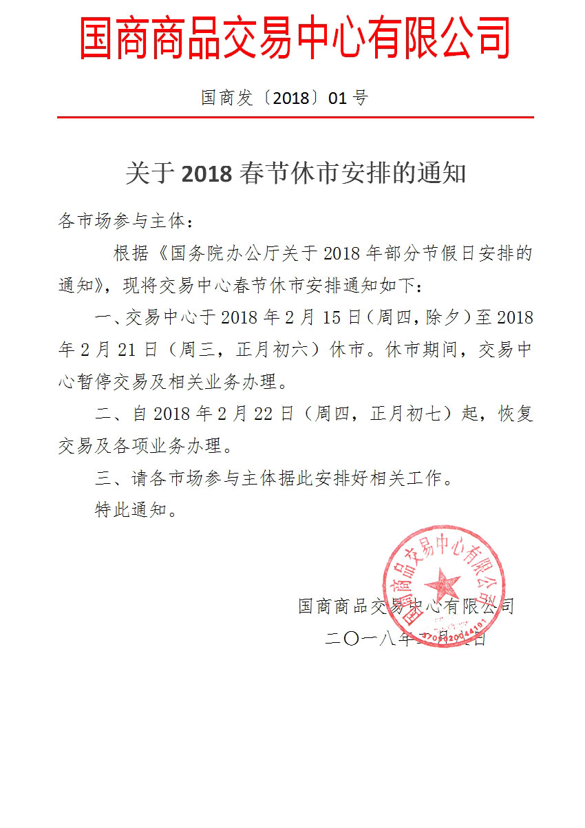 关于2018春节休市安排的通知