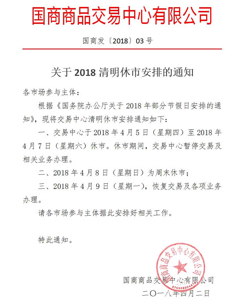 关于2018清明休市安排的通知