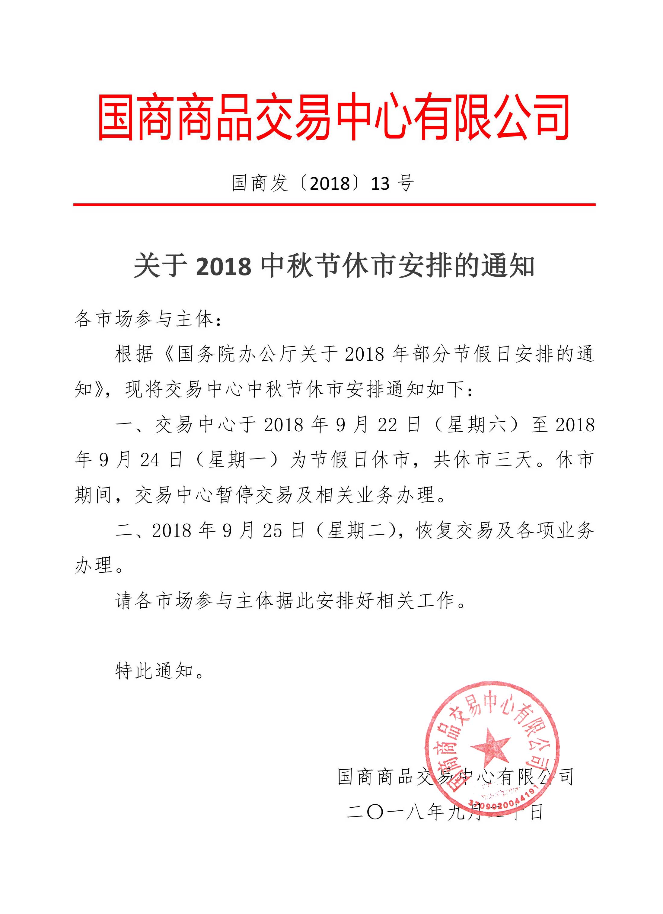 关于2018中秋节休市安排的通知