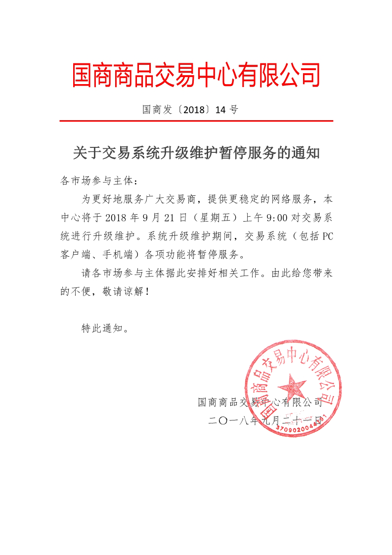 关于交易系统升级维护暂停服务的通知