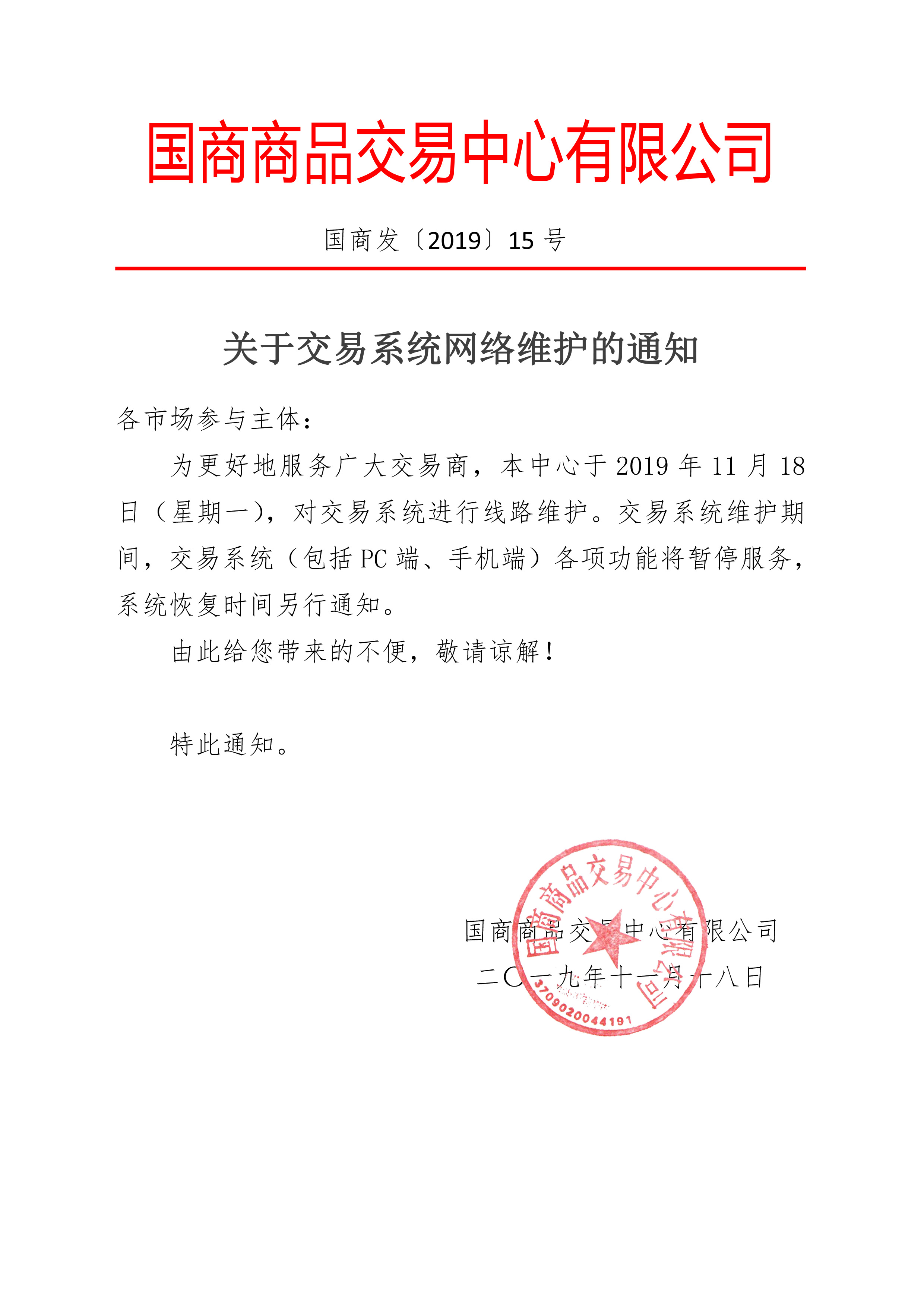 关于交易系统网络维护的通知