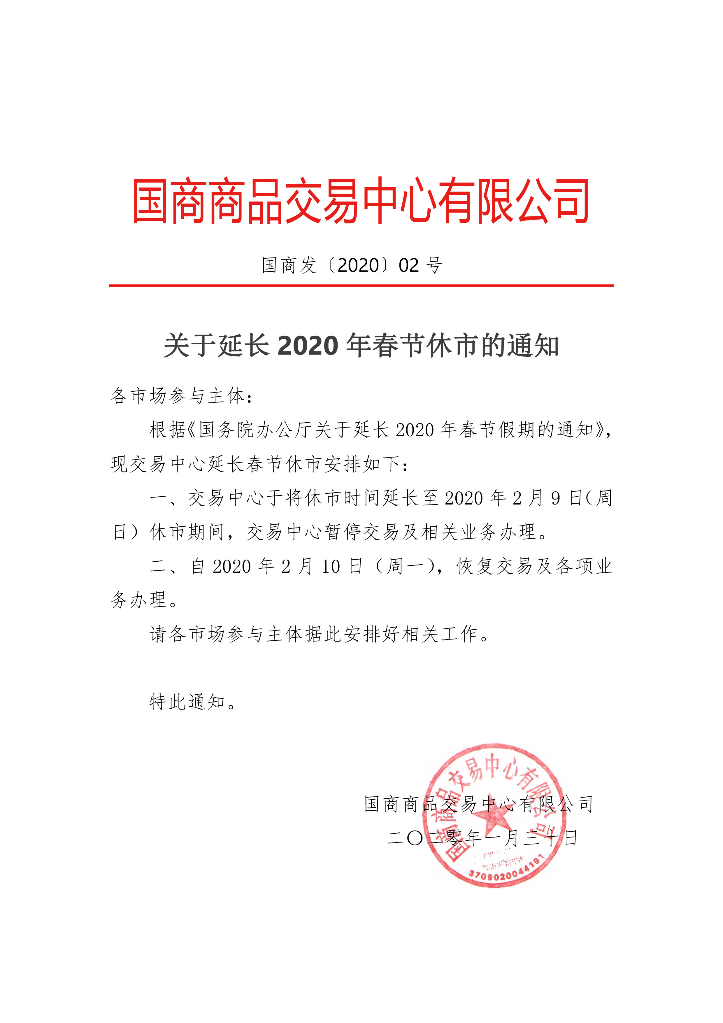 关于延长2020春节休市的通知
