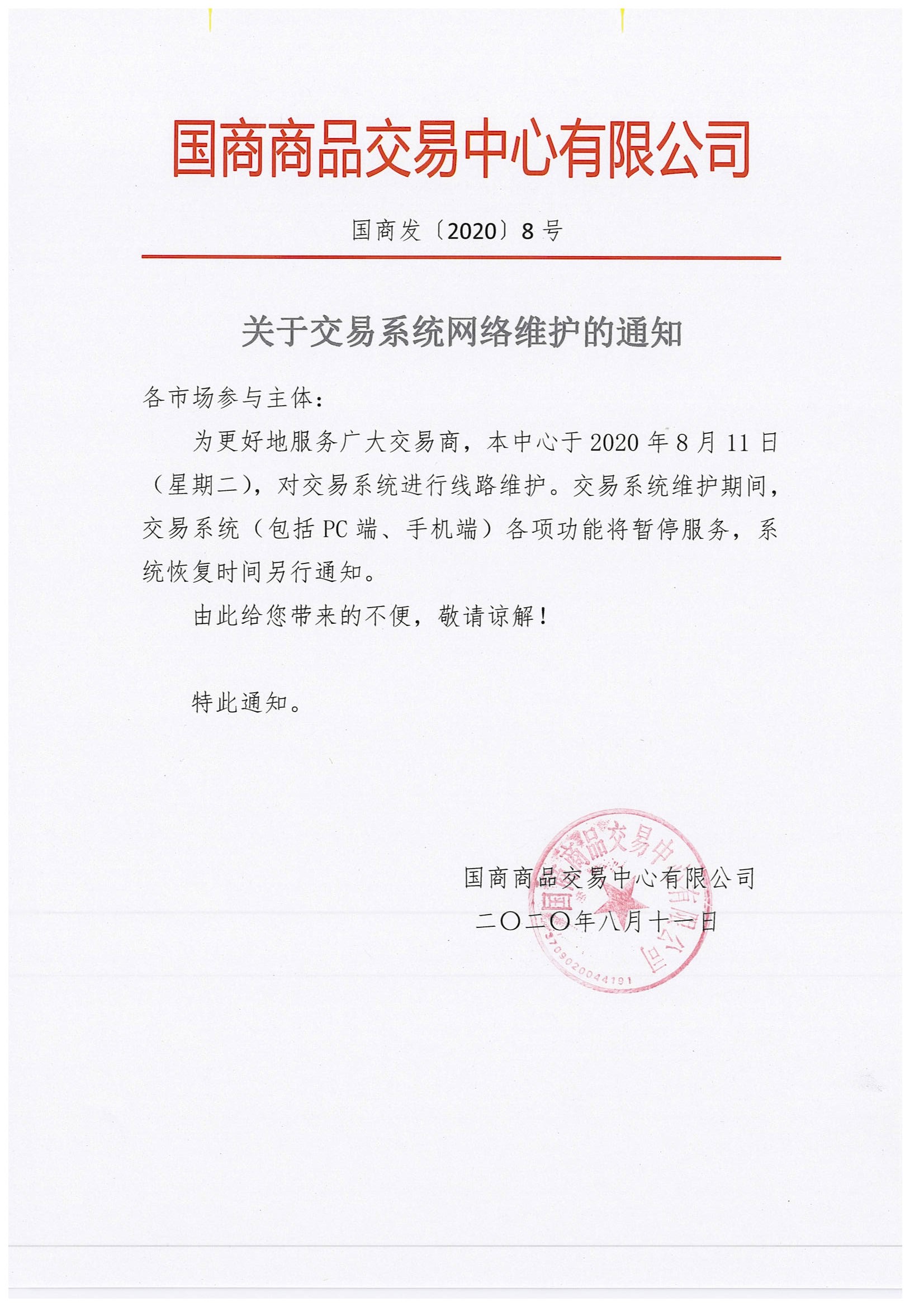 关于交易系统网络维护的通知
