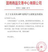 关于交易系统APP端维护完成恢复的通知 2018-05-21