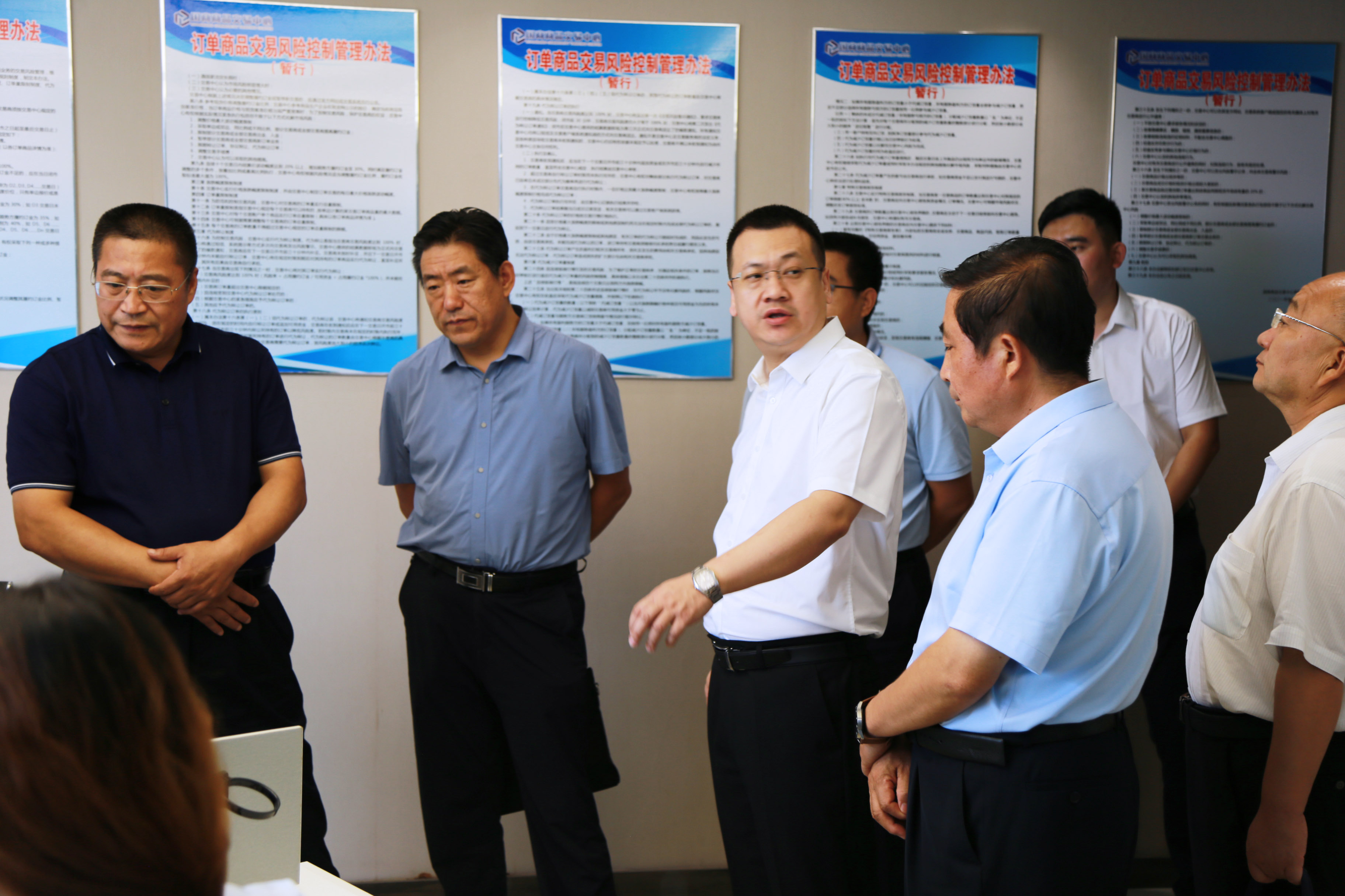 8月10日, 山东省地方金融监督管理局李坤道副局长一行到国商商品交易中心调研。泰安市地方金融监督管理局领导、泰安市泰山区金融监督管理局领导、泰安市泰山区财源街道领导、国商商品交易中心管理层参与座谈会。
