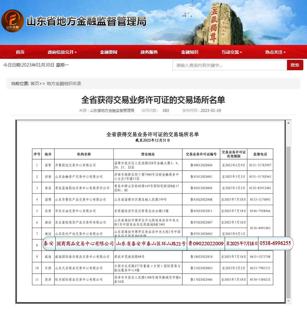 转载:全省获得交易业务许可证的交易场所名单