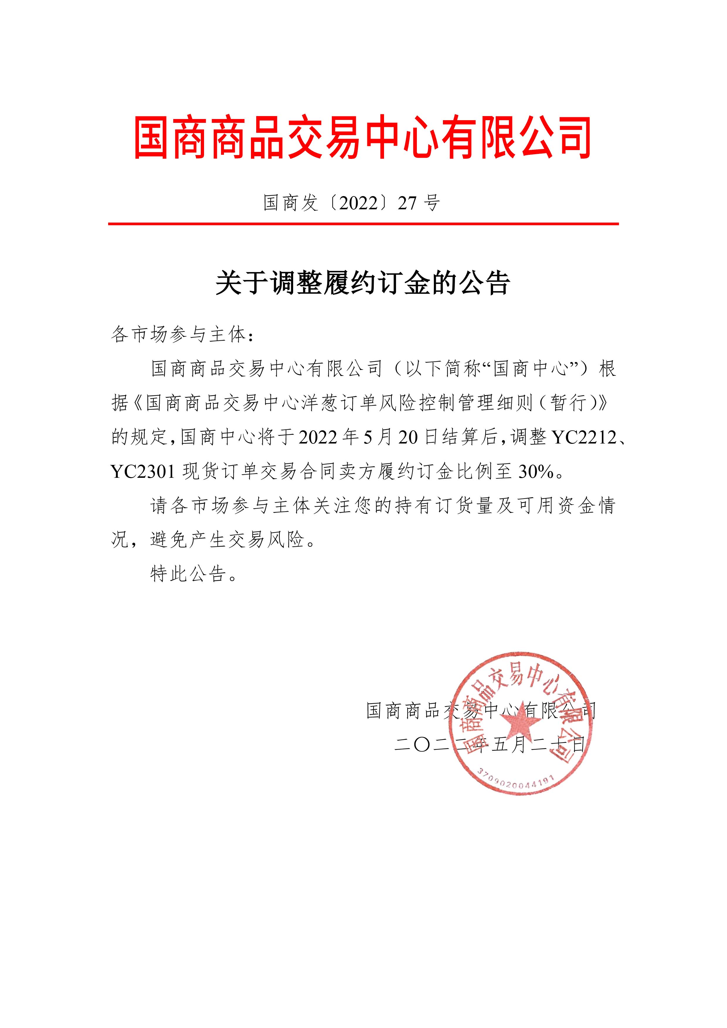 关于调整履约订金的公告