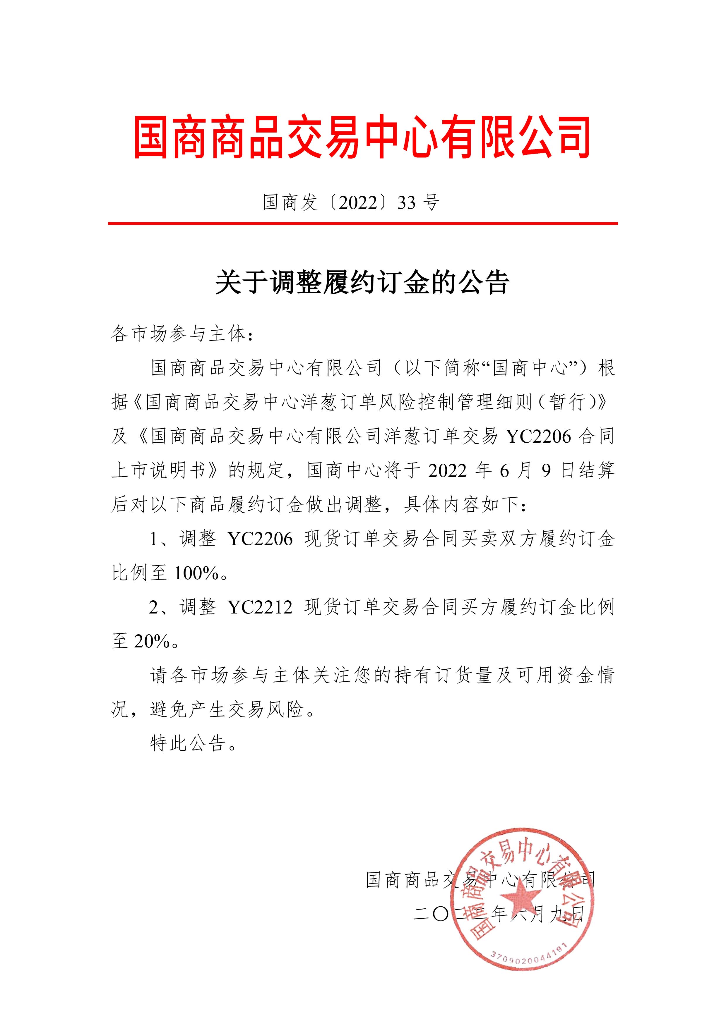 关于YC2206现货订单交易合同到期交收的通知