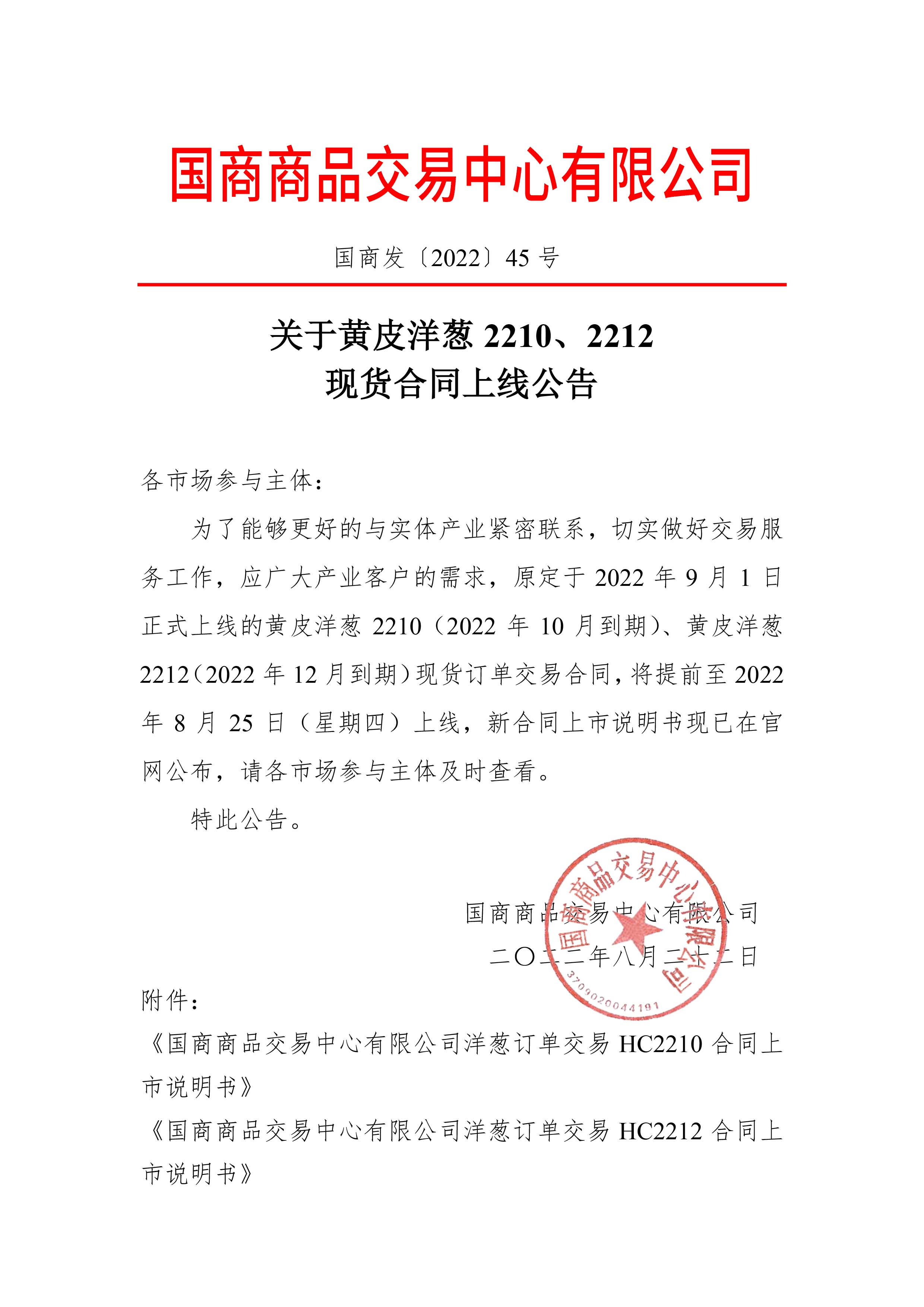 《国商商品交易中心有限公司洋葱订单交易HC2210合同上市说明书》