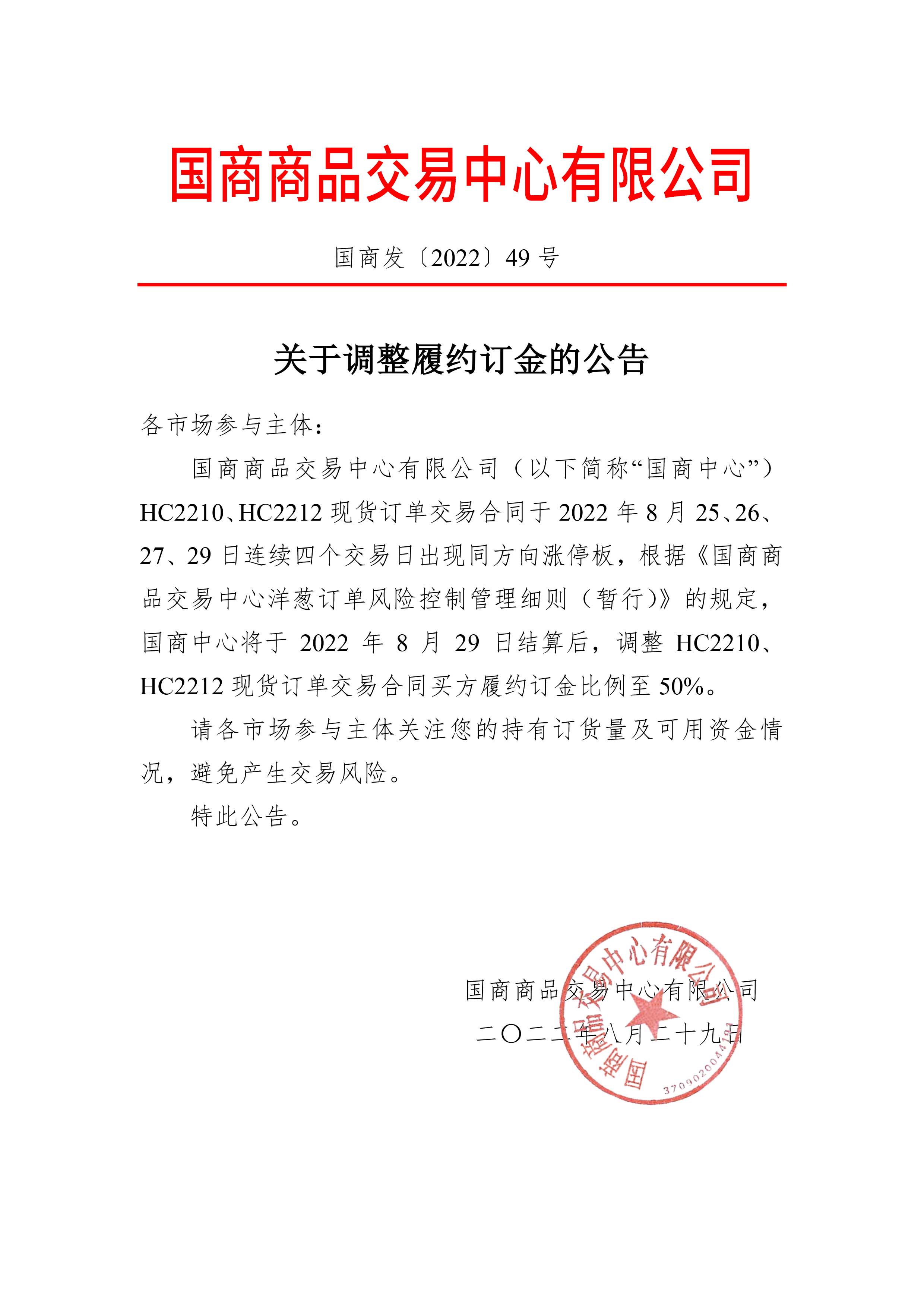 关于调整履约订金的公告