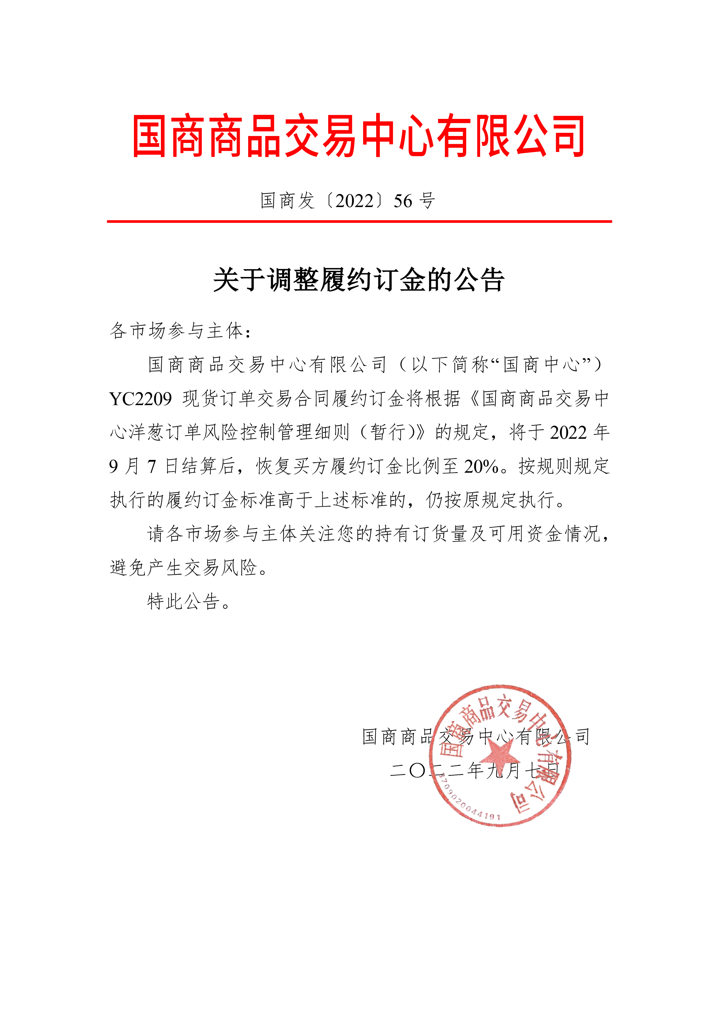 关于调整履约订金的公告