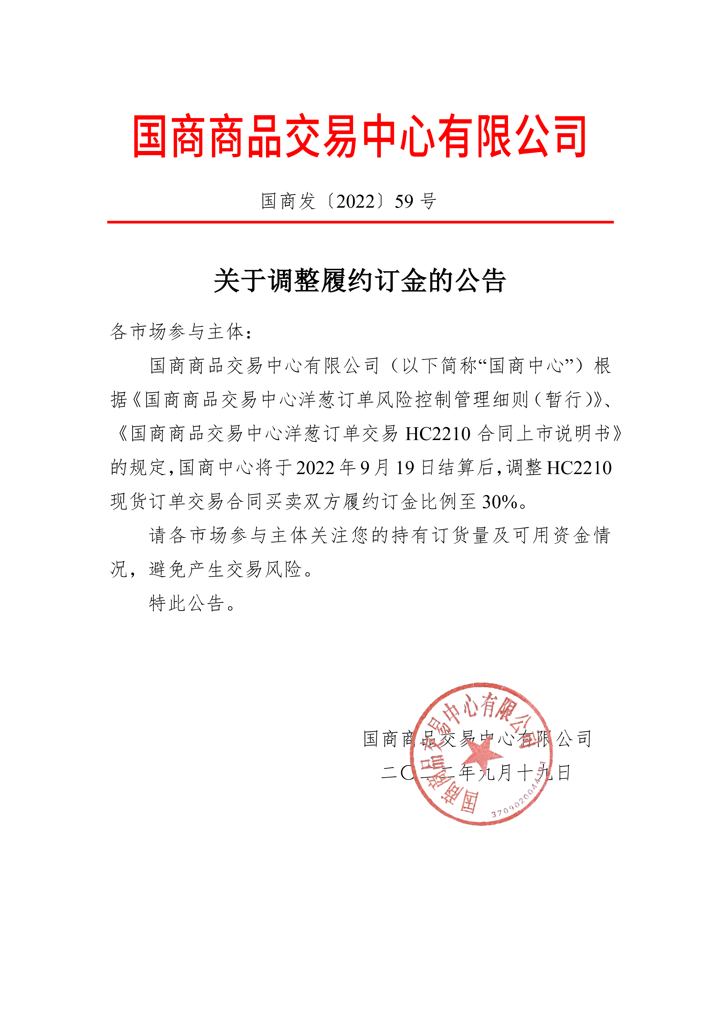 关于YC2209交收价公告