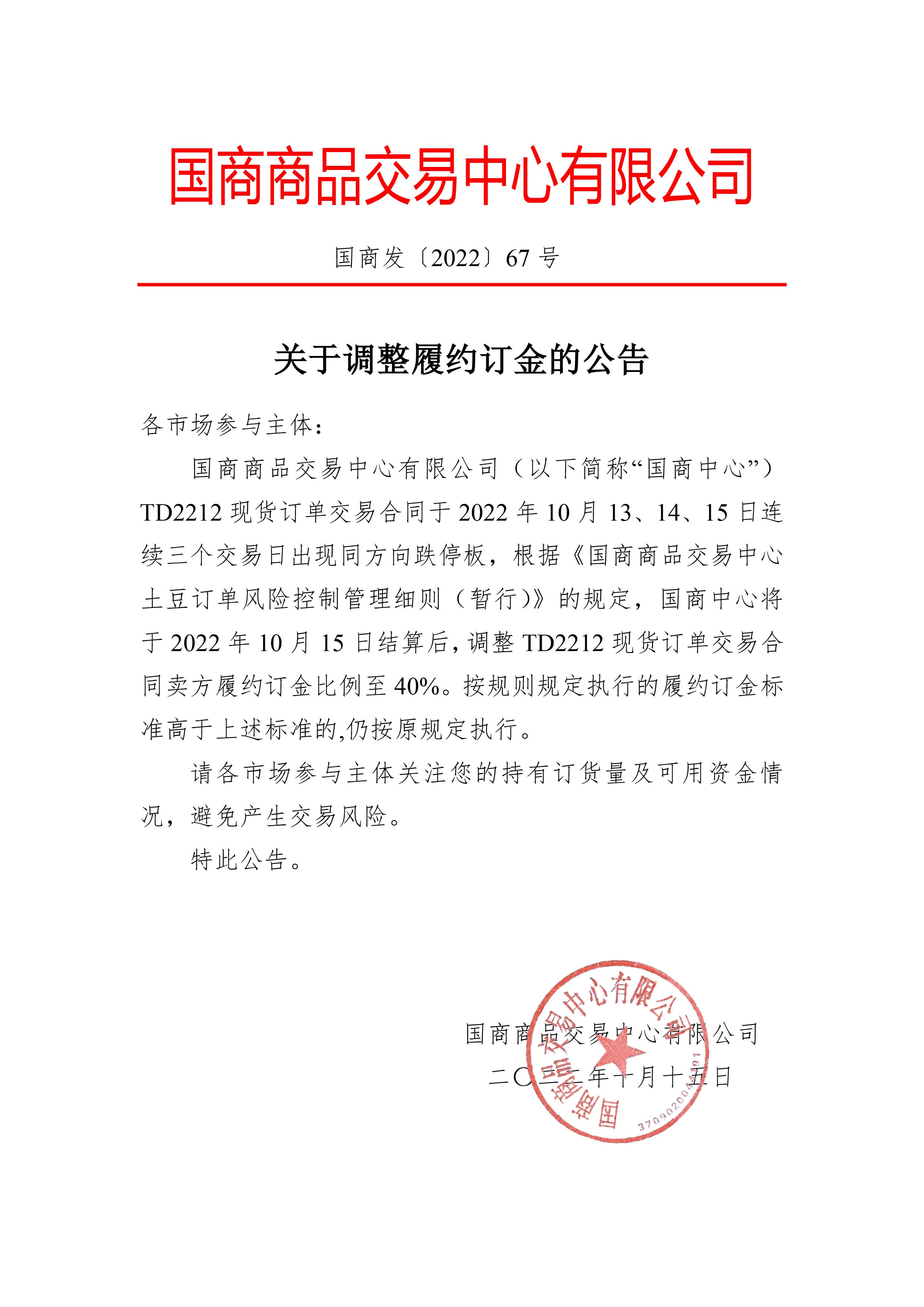关于调整履约订金的公告
