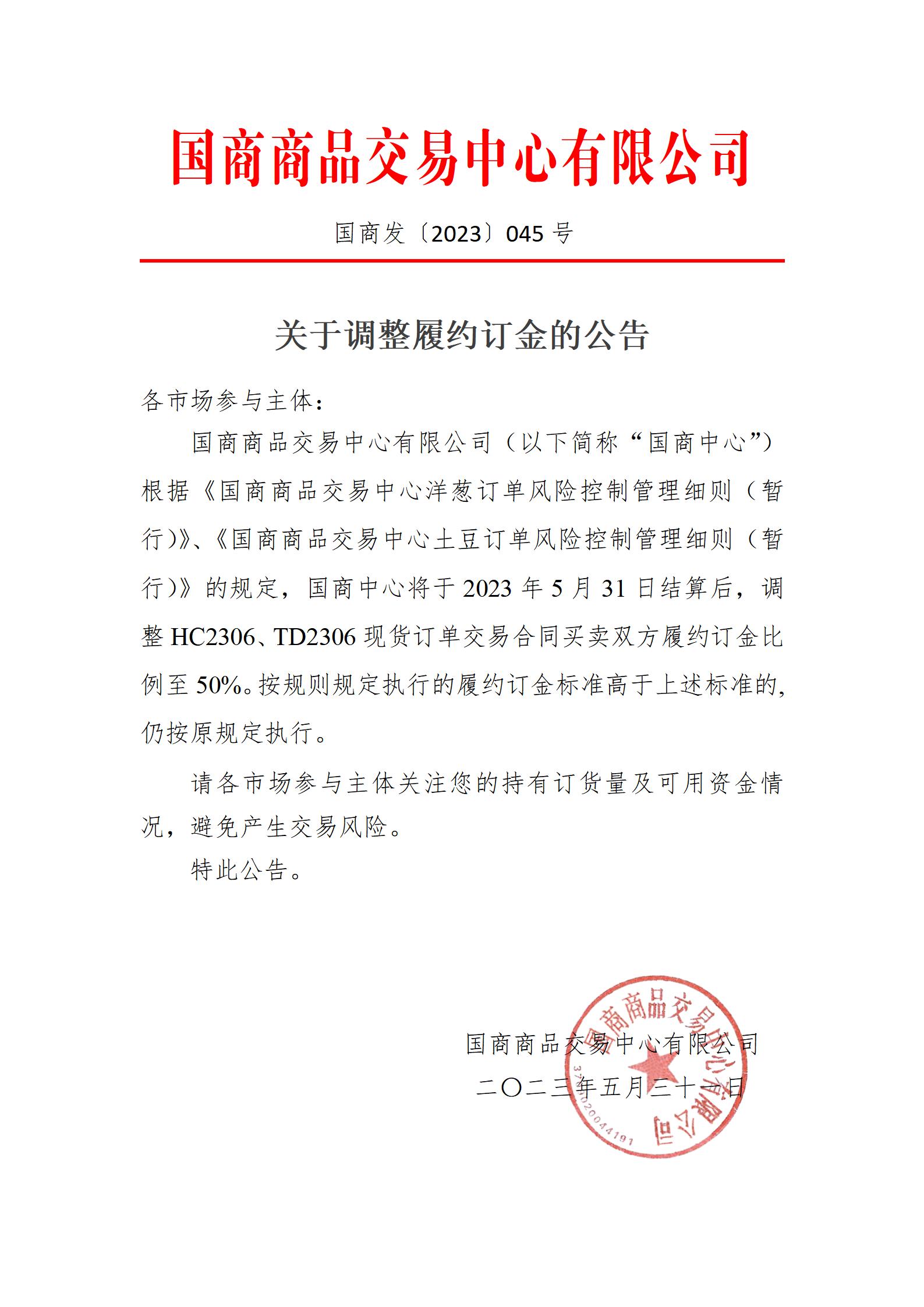 关于调整履约定金的公告