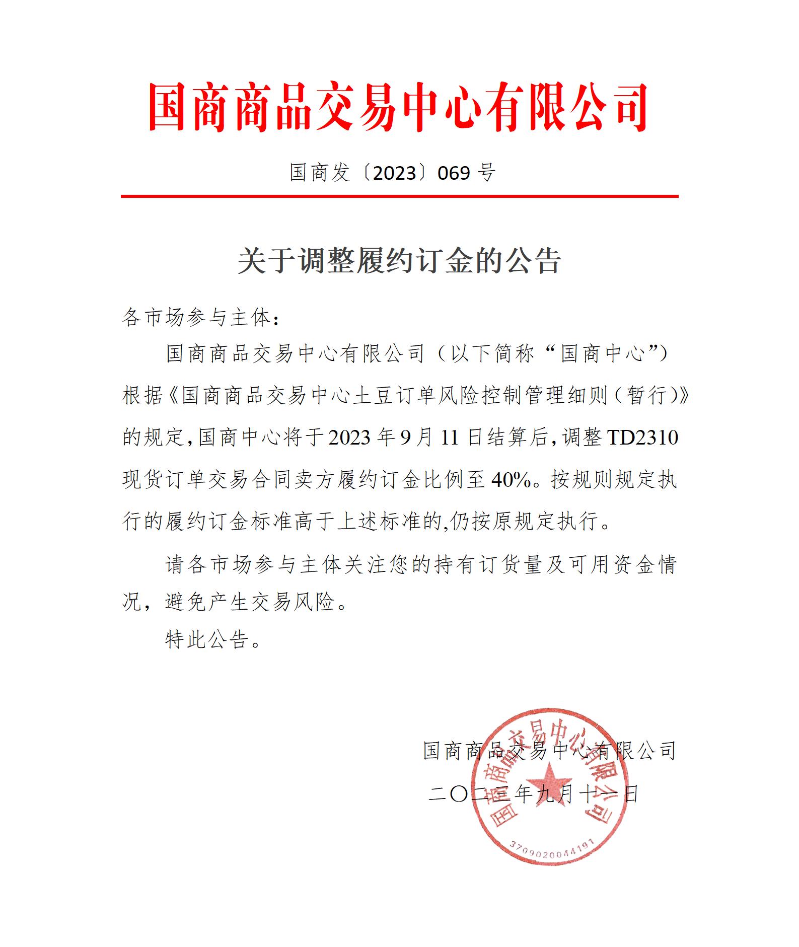 关于调整履约订金的公告