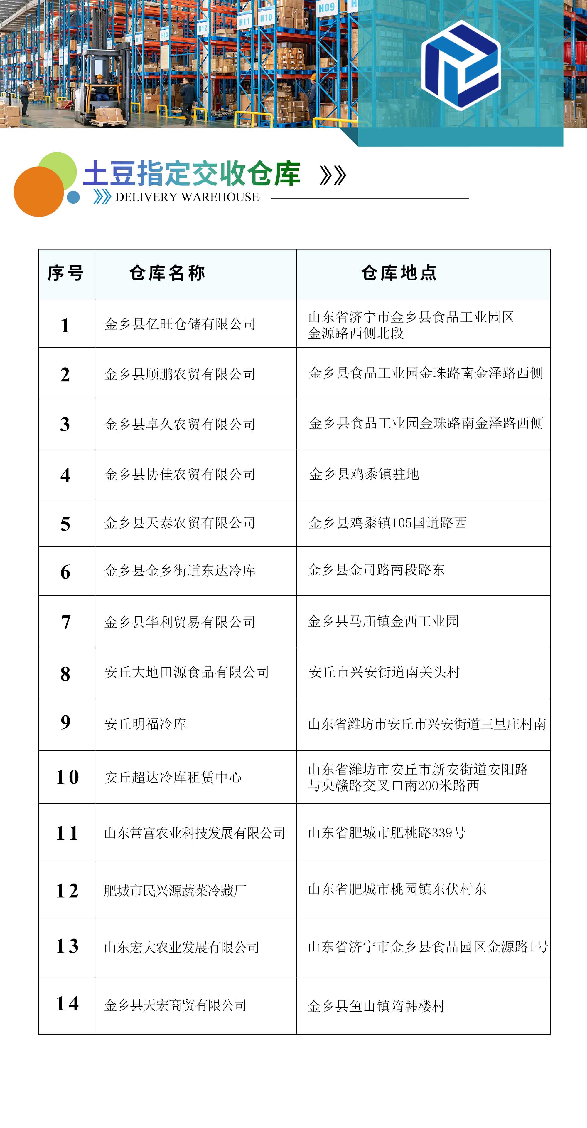 土豆指定交收仓库