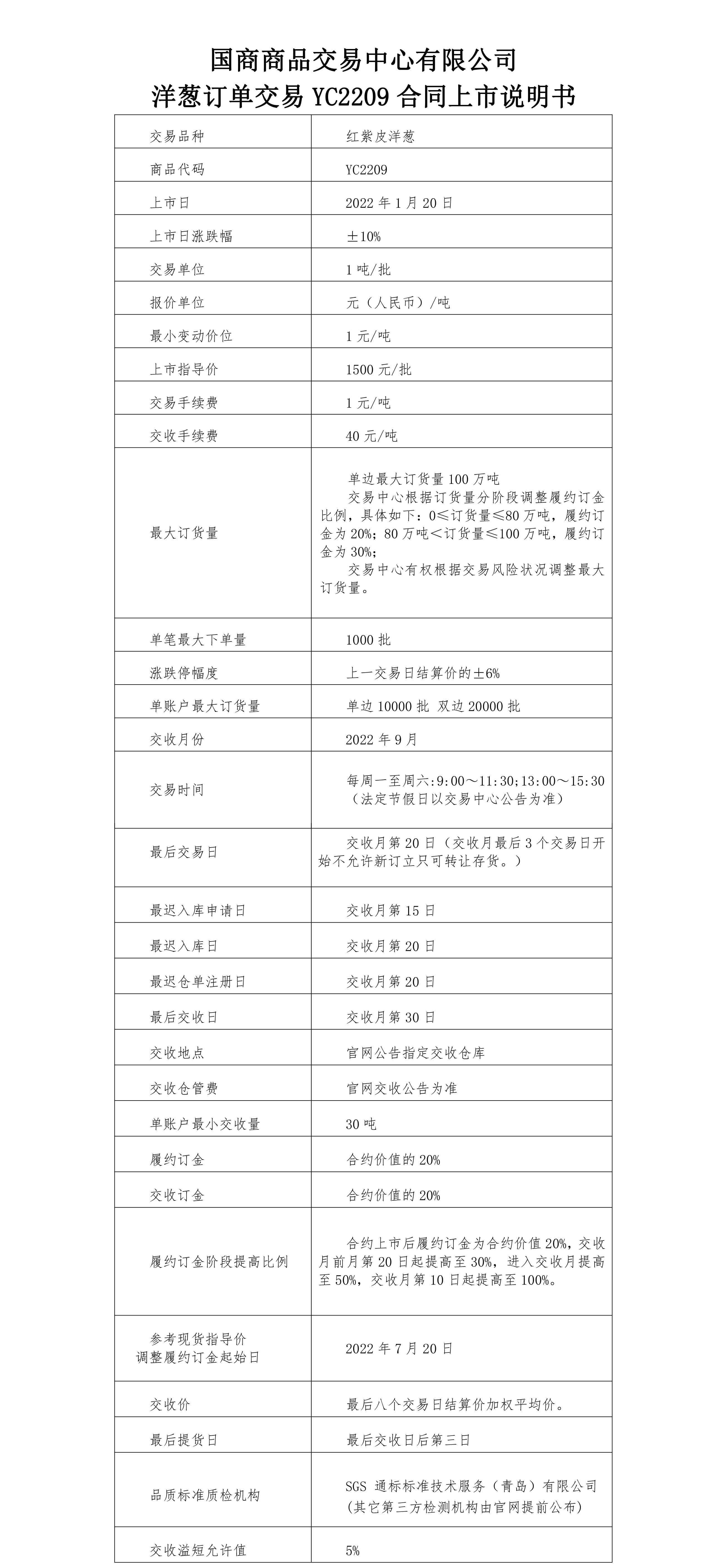 洋葱订单交易YC2209合同上市说明书