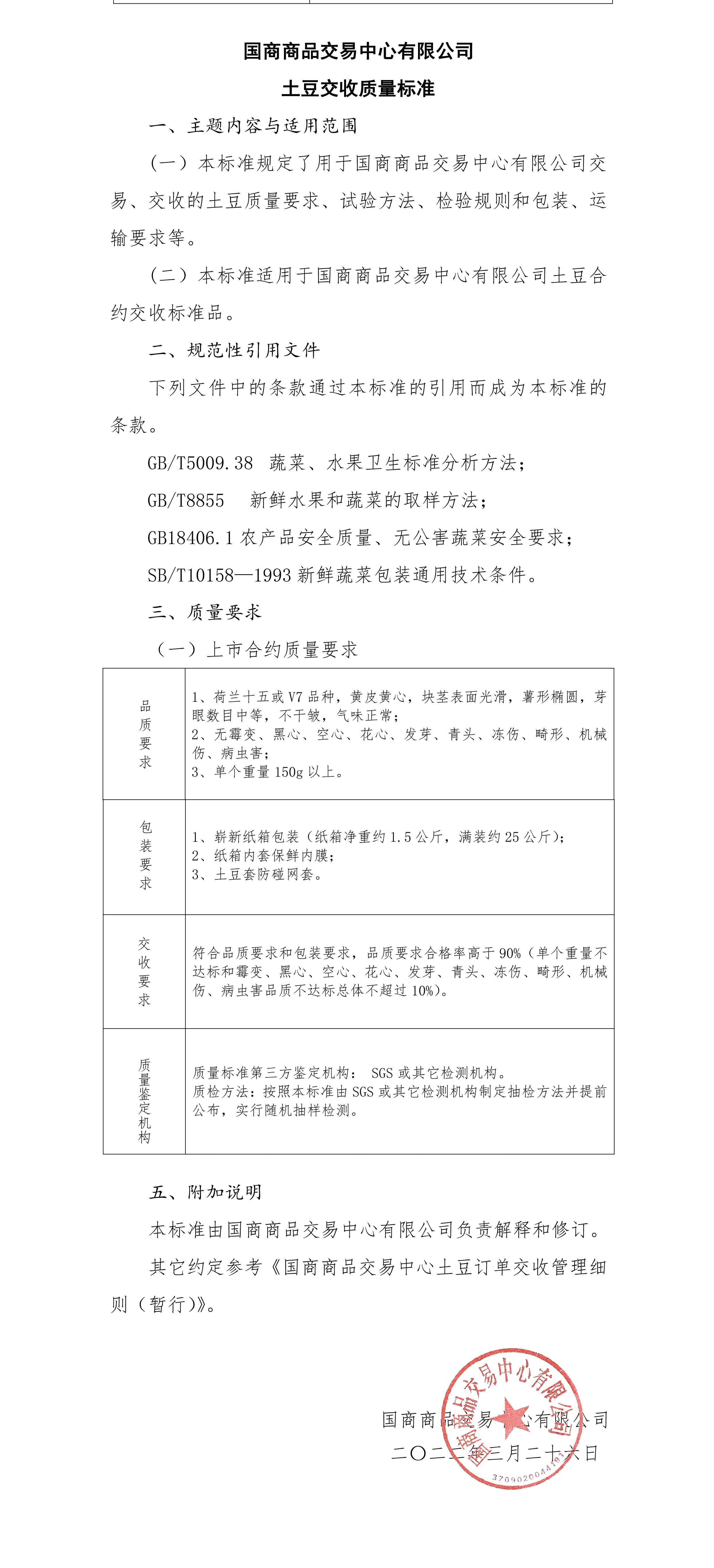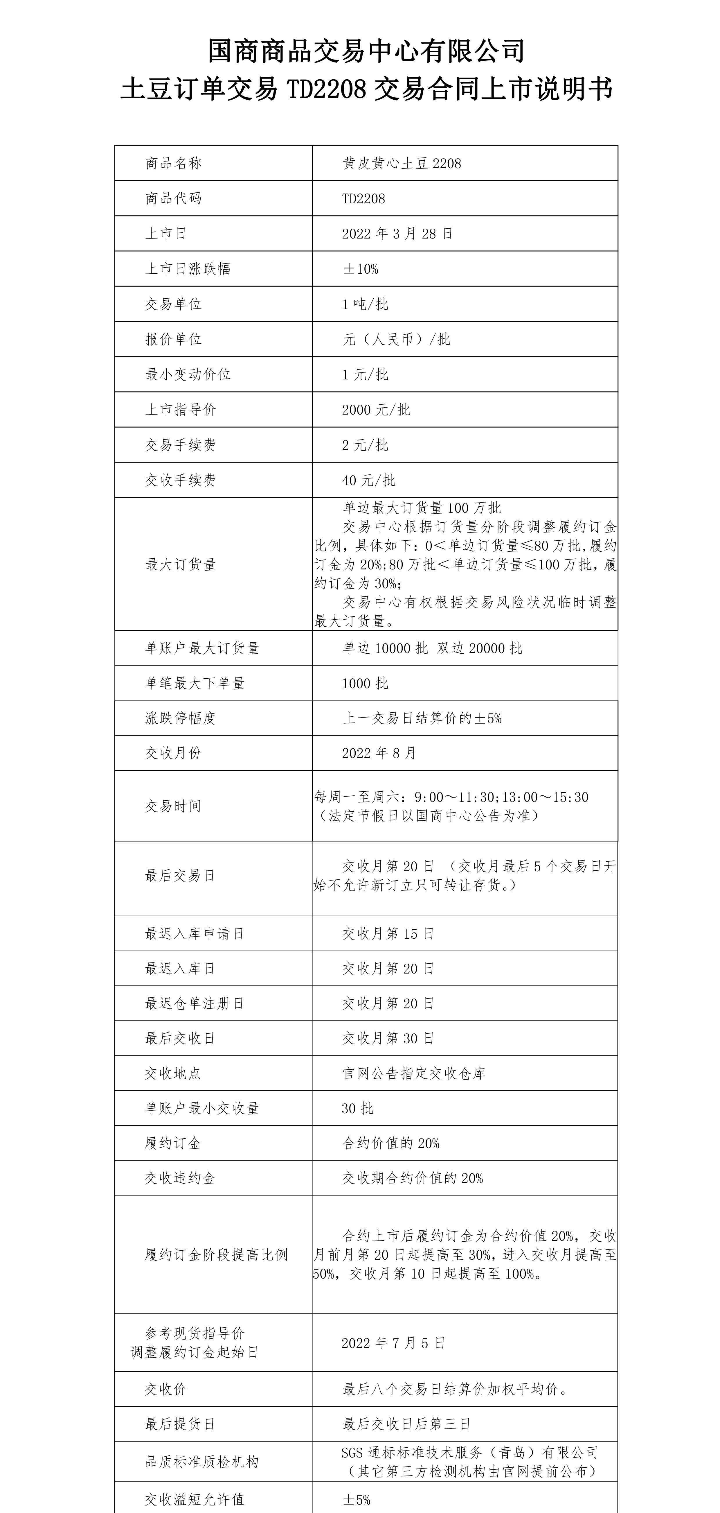 土豆订单交易TD2208合同上市说明书