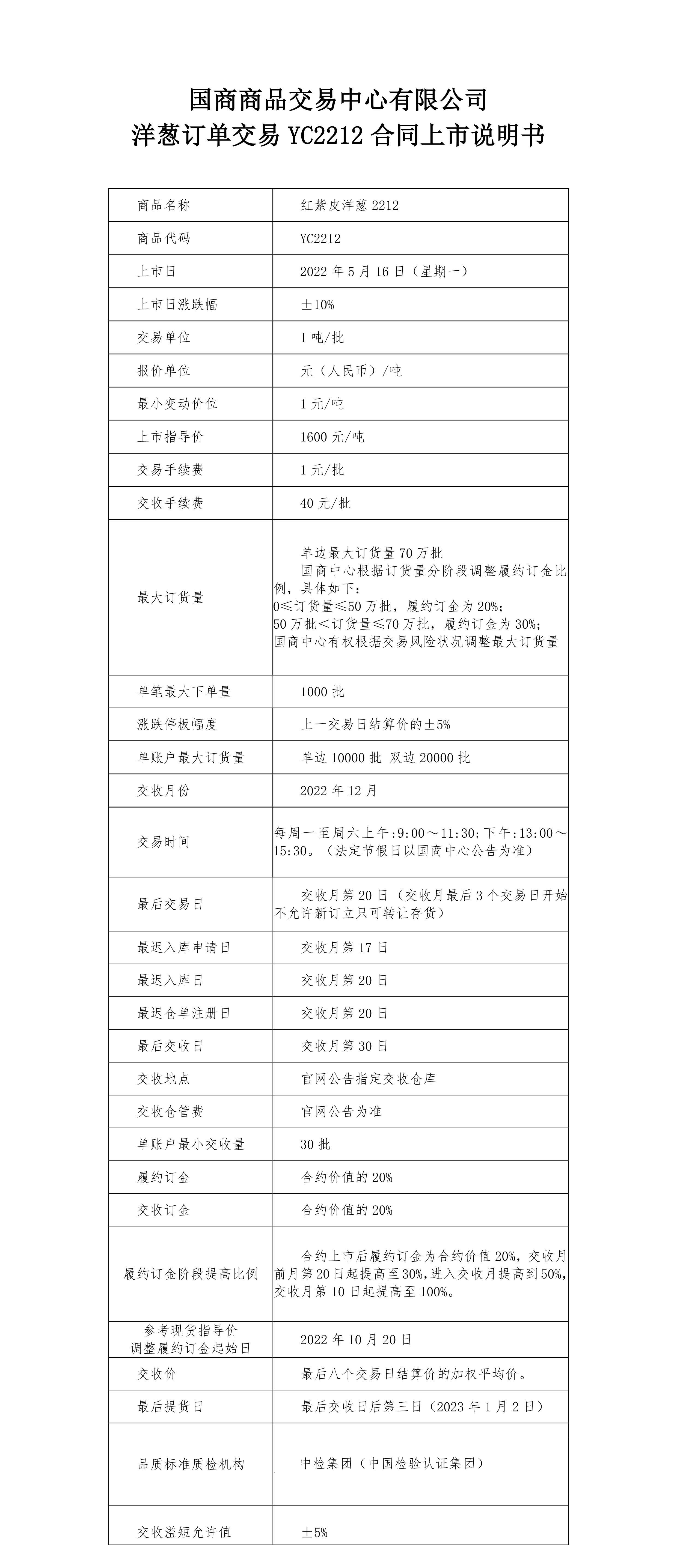 洋葱订单交易YC2212合同上市说明书
