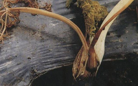 洋葱生长过程中如果不及时浇水,特别是沙质土壤且有机肥少的地块容易出现植株黄叶的现象。洋葱栽培时夏季温度高达35℃以上也会出现叶黄枯的症状,严重时会造成洋葱大面积死棵。