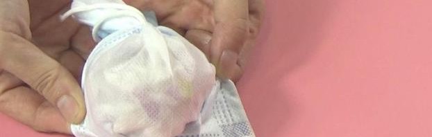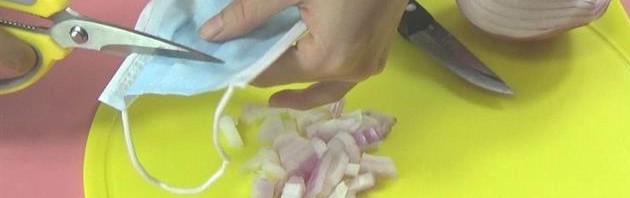 我们准备好洋葱,把它切成丁,然后准备一次性口罩;