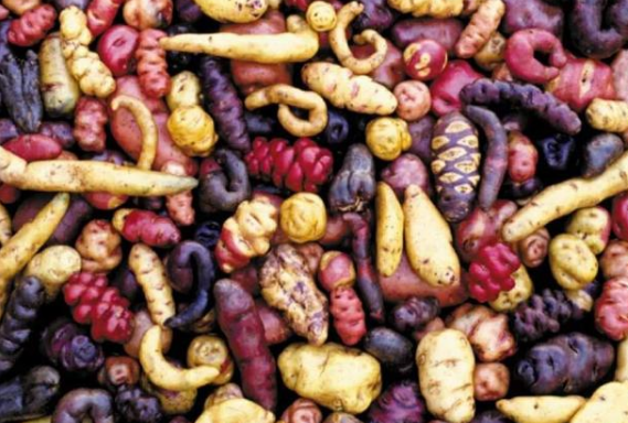 在秘鲁,除了最普通的土黄色马铃薯外,当地农民还种植出了五颜六色、而且奇形怪状的马铃薯,使得秘鲁马铃薯品种多达3500种。