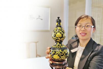 “这件泰山玉缠枝莲纹葫芦瓶可是给泰山玉挣足了面子呢!”遇石记红门店经理肖女士告诉记者,去年在义乌举行的中国旅游商品大赛和中国旅游商品开发研讨会上,由遇石记推出的泰山玉作品—《泰山玉缠枝莲纹葫芦》斩获金奖,填补了泰山玉在中国旅游商品大赛的金奖空白。