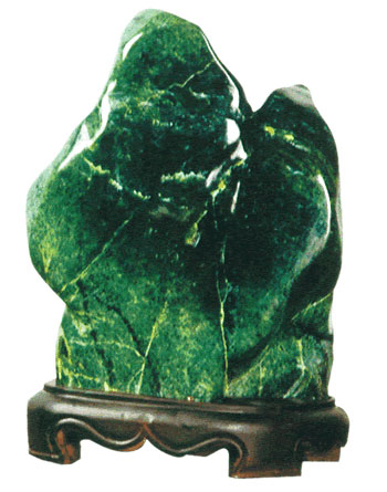 李继生说,上世纪 80年代初,在泰安市与济南市交界处的界首、石腊南山上,泰山玉又被重新发现。最早,泰山玉被包裹在一种叫做蛇纹岩的岩石里面,因为富含磷、钙、镁等元素,所以当时就被当成一种制造化肥的原料加以利用,按照每斤7分钱到8分钱的价格出售。后来,在挖掘过程中,经常会发现这些蛇纹岩里面夹杂着一些破碎的泰山玉。发现蛇纹岩中包含玉石以后,济南长清地区开始挖掘泰山玉,挖出了体积较大的泰山玉。有地质专家认为,泰山玉为蛇纹石质玉,致密块状,硬度5.8度左右,岩性为变超基性岩,形成时间距今25亿3600万年。形成过程为深源岩浆沿构造侵入,富镁超基性岩受高温气体——液体作用变质而成,属变质超基性岩浆矿床。经过国家鉴定,泰山玉的品质非常好,属于优质的硬度玉,品种较多,分为墨玉、花斑玉和碧玉、红玉四大类。泰山墨玉质密细腻,光滑乌亮;花斑玉五彩相间,斑斑驳驳;碧玉晶莹剔透,绿如夏荷;红玉色泽艳丽,美若云霞。品质高于辽宁的岫岩玉和山东的莱州玉。