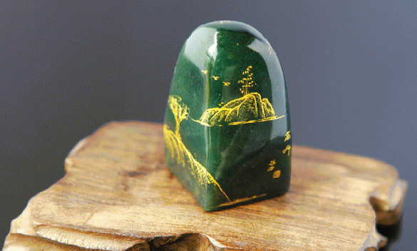 碧如大海(墨绿色)是上等泰山玉石的特征,即绿中藏黑、黑中透绿。