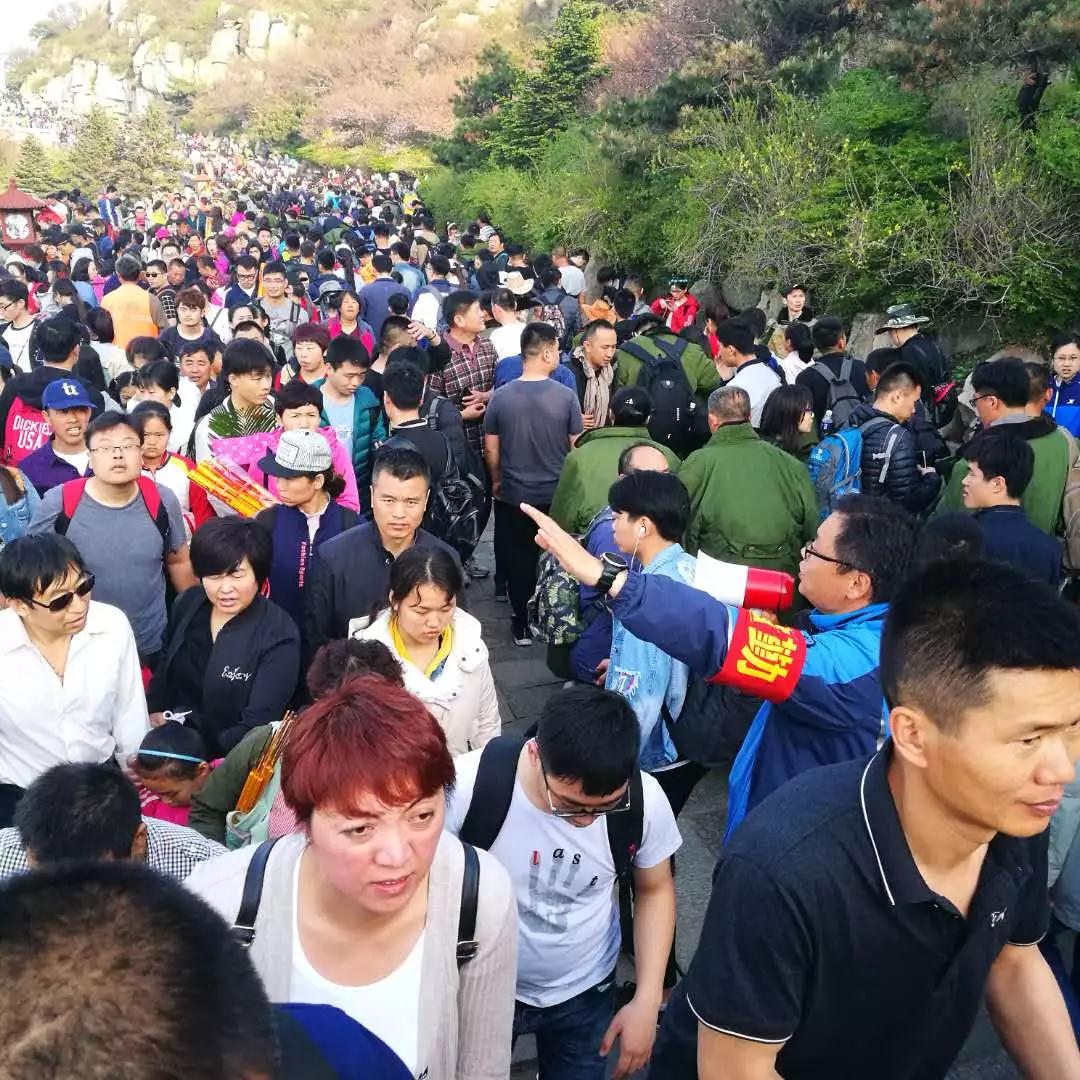 每逢五一、十一假期,泰山景区都是人山人海——往上看全是脚后跟、往下看都是后脑勺。