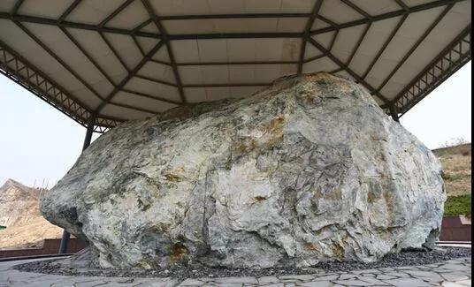 现场工作人员介绍,泰山玉王是2013年10月10日在泰山玉矿一采场发现的,挖掘历时半个月,吊装过程历经五昼夜。挖掘这块大玉石共动用了5台70吨级的吊车,1台160吨级吊车,4台大型挖掘机和4台大型装载机各。泰山玉王长10米,高5米,宽6米,总重量超过300吨,通体碧绿、质地细腻、晶莹剔透,为泰山玉中的极品,价值不可估量。