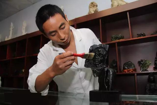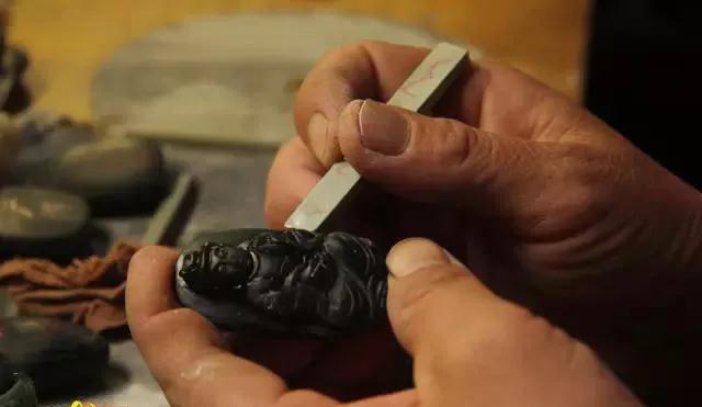 上蜡来增加玉的亮度和光洁度,让玉器表面的擦痕消除,一块泰山玉就算完成了。