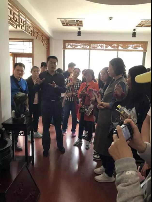 上午玉矿考察完毕之后,以国家黄金钻石检验检测中心程佑法主任为首的全国各地的质检专家,专程来到泰山玉展销中心进行了参观考察,冯浩秘书长代表协会对各位专家进行了热情接待,并就泰山玉的文化内涵和产品创作做了详细介绍。