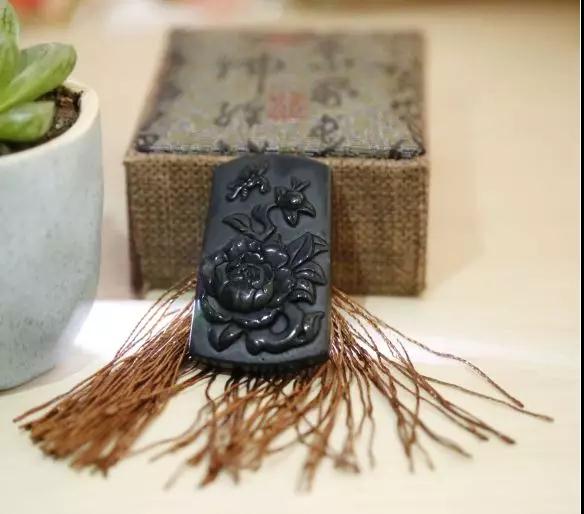 此玉为泰山碧玉:质地晶莹温润,油脂到玻璃光泽,自然光线下呈绿墨绿色草绿、光透如 夏荷,具深绿、墨绿等色,尤以碧绿为佳。与花开富贵寓意相结合端丽妩媚,雍容华贵,色、香、韵集美一身,“牡丹,花之富贵者也”象征“国色天香”“花开富贵”繁荣昌盛,幸福和平。
