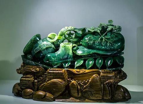 据了解,泰山玉为蛇纹石质玉,致密块状,硬度4.8-5.8度之间,岩性为变超基性岩,形成时间距今25亿3600万年。经过国家鉴定,泰山玉的品质非常好,属于优质的硬度玉,品种分为墨玉、花斑玉、碧玉、紫檀玉四大类。泰山墨玉质密细腻,光滑乌亮;花斑玉五彩相间,斑斑驳驳;碧玉晶莹剔透,绿如夏荷;紫檀玉色泽艳丽,美若云霞。