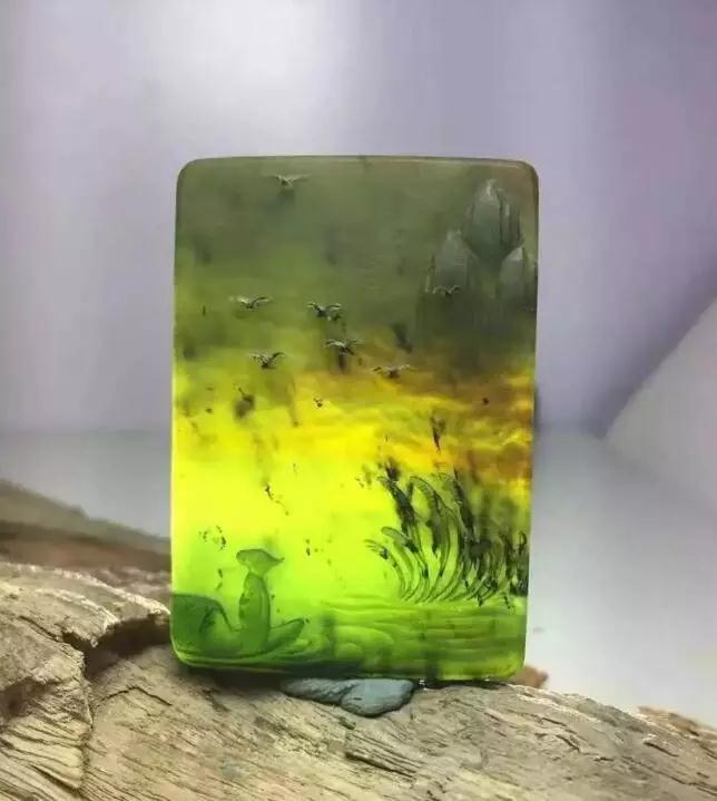 本届大赛中,相当多的作品都展现出了作者对泰山玉的加工特性的研究,例如:作品《青山绿水》巧妙运用了俏色并对泰山玉本身的杂质进行创意雕刻,整体上构成了“落霞与孤鹜齐飞,秋水共长天一色”的极佳视觉效果。